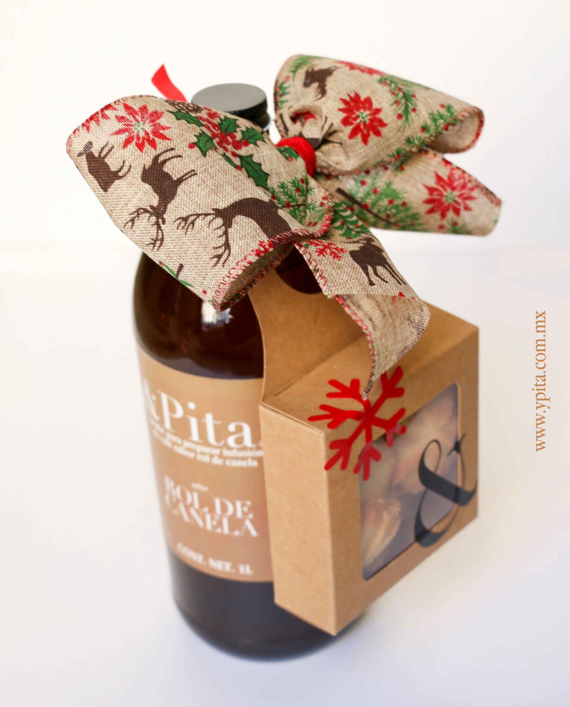 Incluye 1 litro de jarabe natural (elige tu sabor favorito de temporada) y una cajita súper bonita con 5 galletas de mantequilla, decorado con un moño festivo.